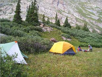 The 11:15AM stop at Needleton was at about 11:30. We started off up the steep trail to North Pigeon Creek drainage. After about 3500 feet of gain, we were glad to set the packs down in the campsite.