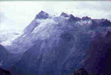 The Rio Fortalaza valley floor was lush and green, but the mountainous sides to the valley were completely devoid of vegetation. Starting at sea level, the road winds its way up to Conocacha Pass at 4080m, crossing over the Cordillera Negra range into the Rio Santa valley. It was just sunset at the pass, as we got our first views of the snow clad Cordillera Blanca range with a tint of alpenglow. We were pleased to pull up to Hotel Andino in Huaraz at 7:30PM. After several months of exchanging cordial e-mails, we finally met Jenny. She was as friendly in person as in correspondence. French-swiss born, Jenny runs her hotel with a distinctly European efficiency and style. As she saw Deac with a water bottle in his hand, she quickly asked "coca tea?" and wisked the vessel into the hands of a passing waiter with the request. Jenny had a twinkle in her eye, as she cajoled Kris about looking too stressed for "holiday" and told her to relax and kick back. We were soon checked in, showered and enjoying some Andean flute music in Jenny’s fine restaurant at the hotel. Jenny did a super job making our arrangements in Huaraz for transportation as well as donkeys, cook and other support.